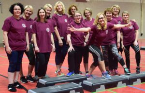 Dritte bzw. zweite von rechts: Birgit Ermecke und Sabine Kemna beim Step