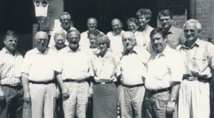 Prominenz zu Besuch: hintere Reihe: Wilfried Dieckmann, Werner Borrmann, Hans Priebe, Marianne Borrmann, Ingeborg Becker und Dieter Klecha.